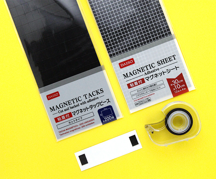 - マグネットテープや薄手のマグネットシートをご用意ください。100均やホームセンターなどで探してみてください。